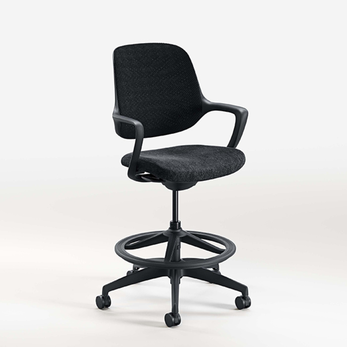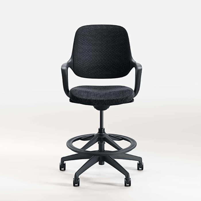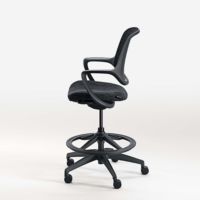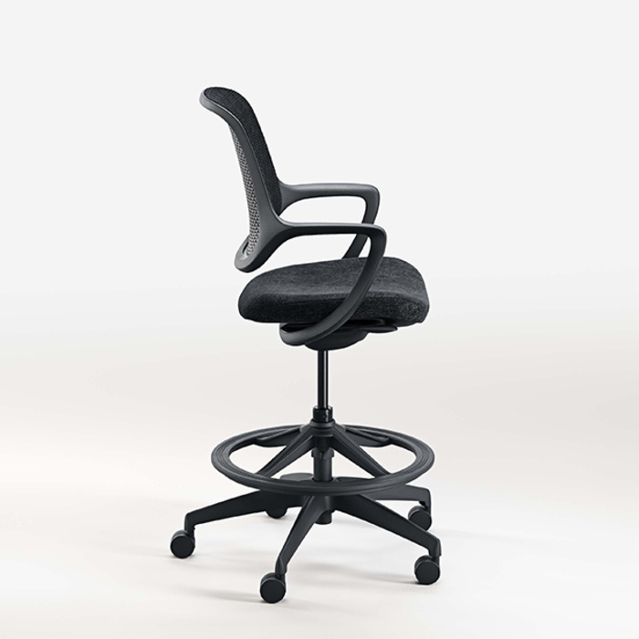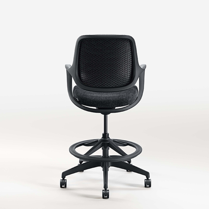 Konfurb Logo The Konfurb Niro Stool has clean sculpted lines, a breathable 3D mesh back, and an adjustable-height foot ring for optimal support. Stocked in Black.