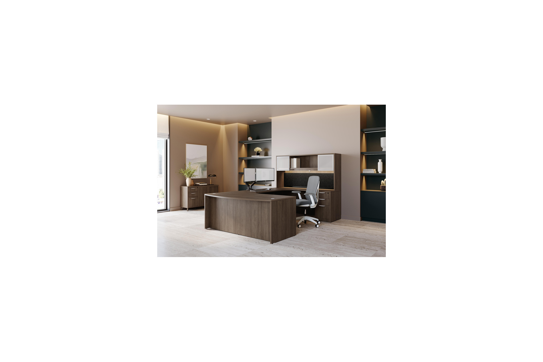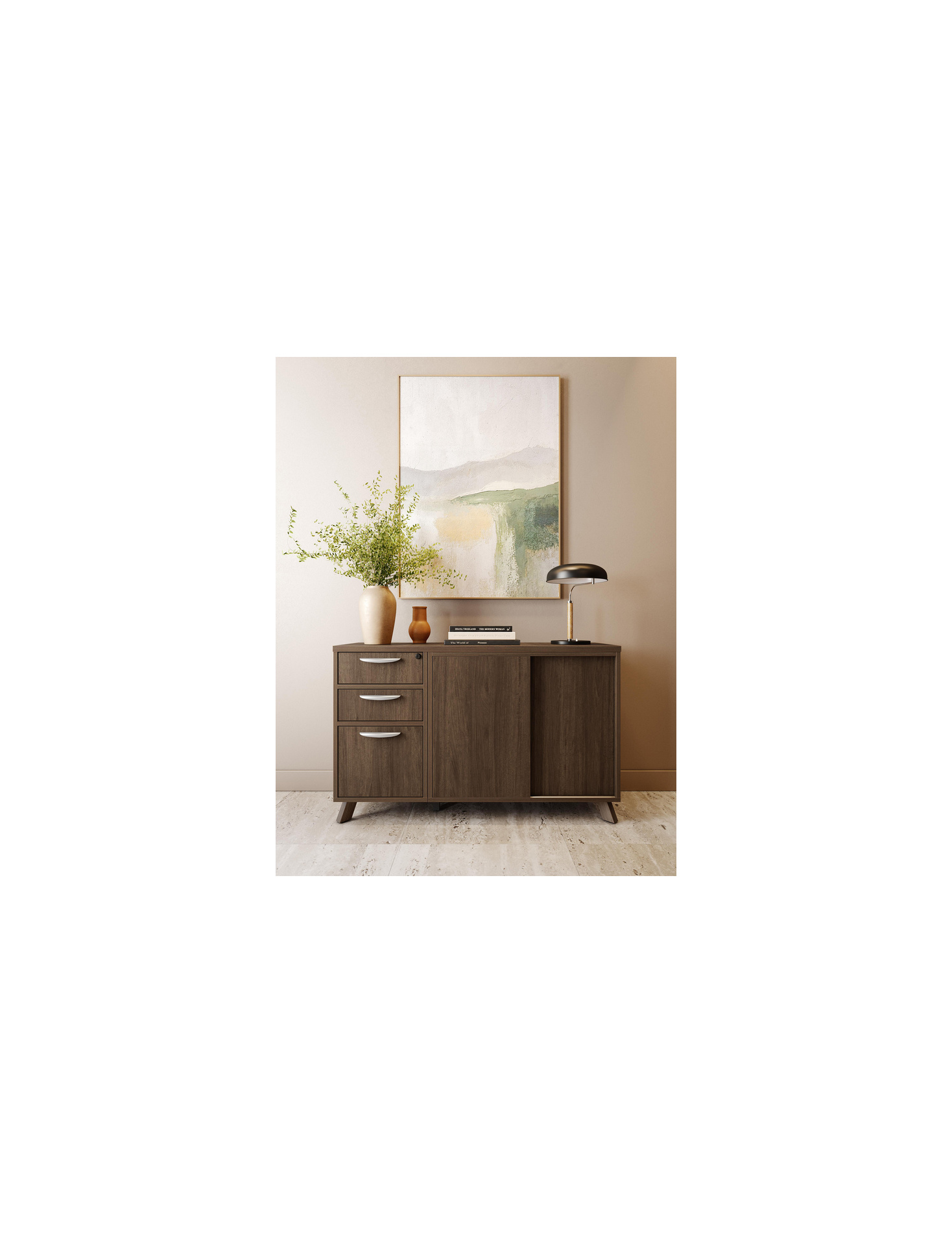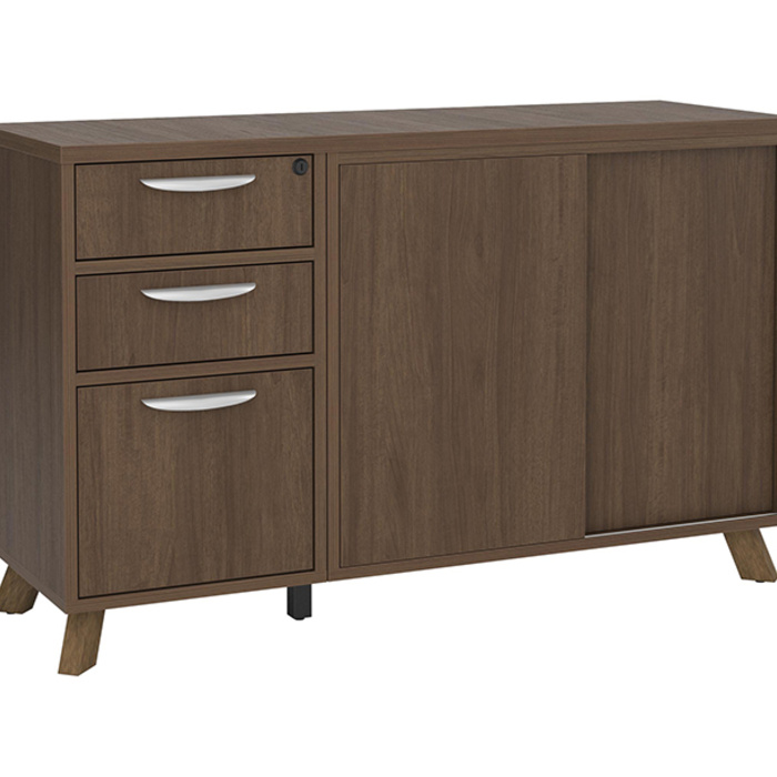 PL245 - FLEX CREDENZA W/PEDESTAL AND CABINET - Modern Walnut