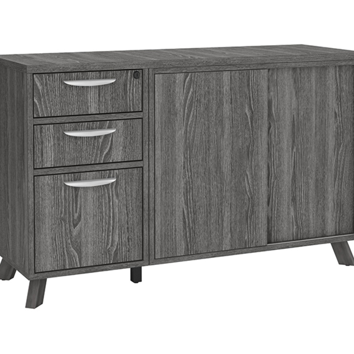 PL245 - FLEX CREDENZA W/PEDESTAL AND CABINET - Newport Gray