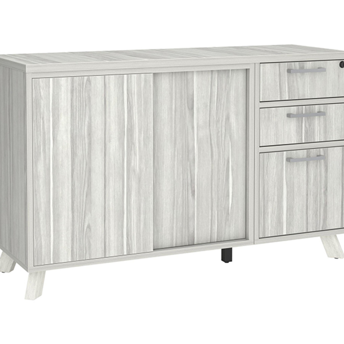 PL245 - FLEX CREDENZA W/PEDESTAL AND CABINET - Silver Birch