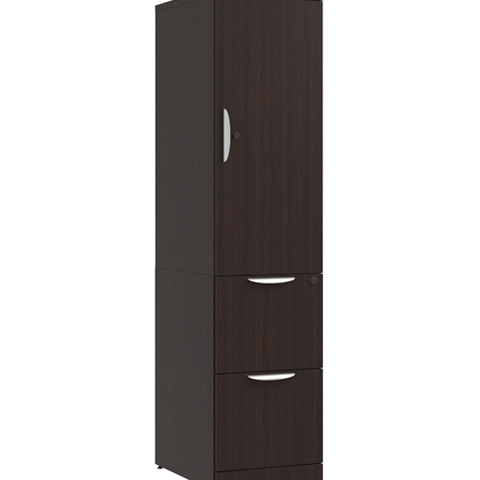Storage cabinet (PL287) with file storage (PL175). Cabinet includes 1 adjustable shelf. Wardrobe includes coat hanger bar.