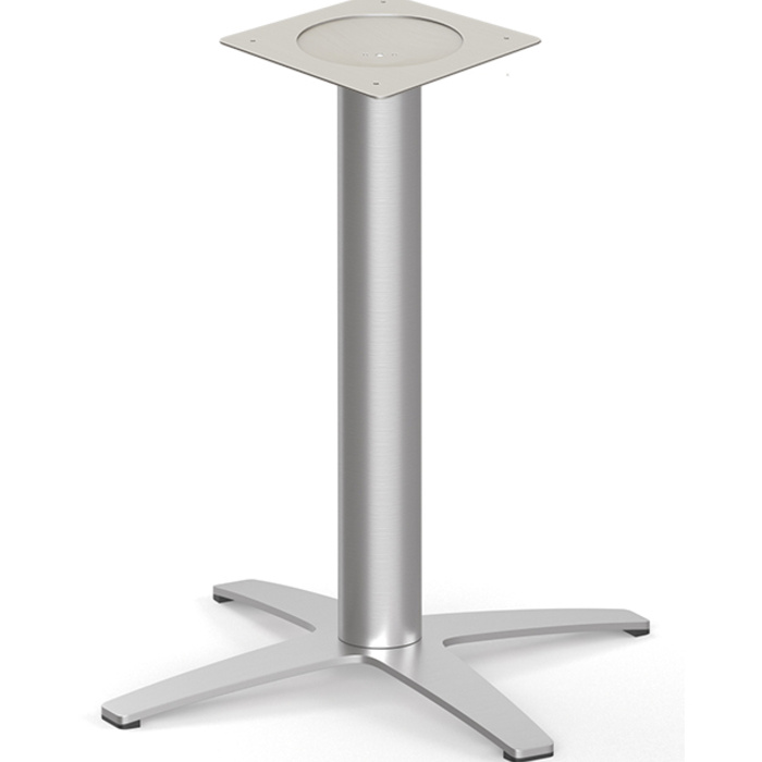 Heavy duty 4-Prong brushed metal base. 28.5" high, 23" spread, for use with 24" round tops.